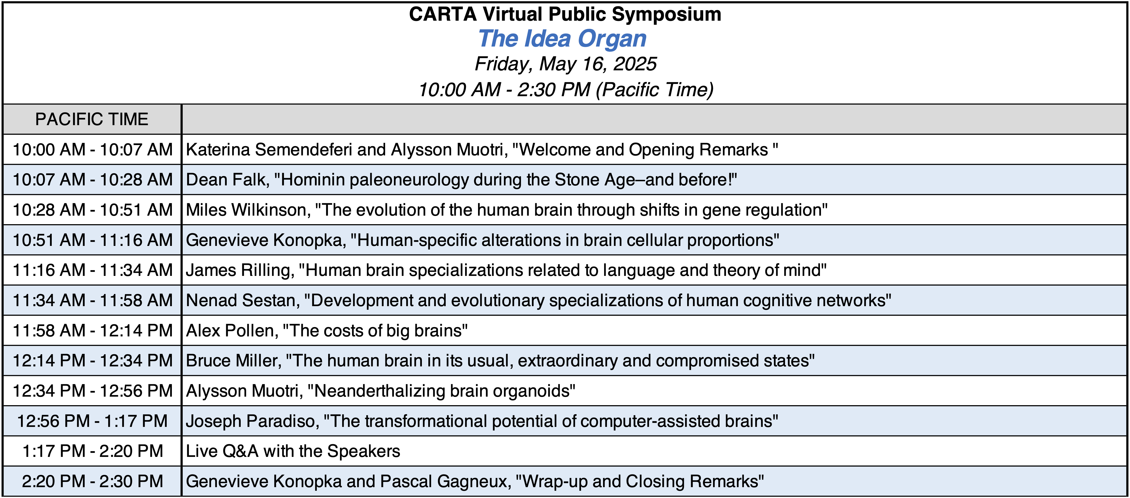 If you do not see the live webcast and the event has already started, please try refreshing your browser. For persistent problems viewing this webcast, email carta-info@anthropogeny.org with any error messages you receive and the type of browser (Chrome, Safari, Edge) you're using.